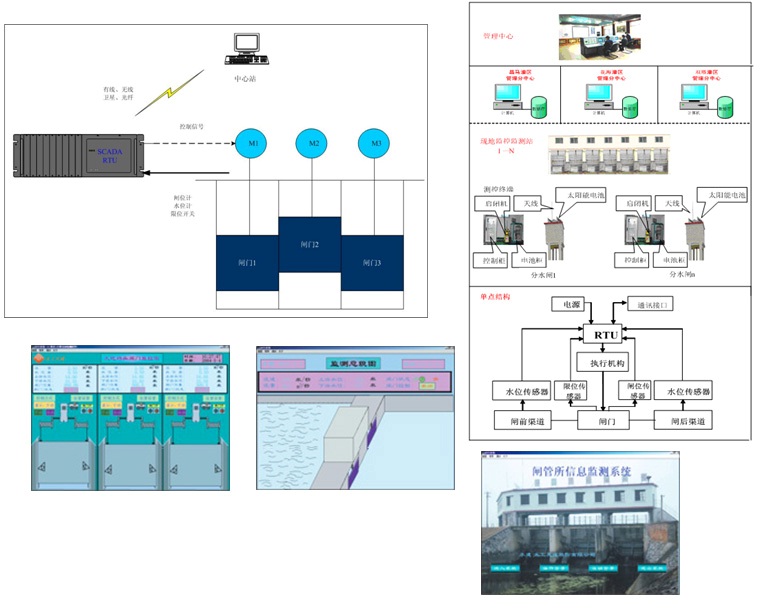 闸门是水利水电工程的重要设施,它担负着水电站的发电、泄洪、水库的灌溉和船闸的航运等重要任务。随着我国现代化水平的提高,闸门群计算机集中监控系统被广泛地采用。我所自上世纪80年代起就致力于本系统的研究和开发,现已形成了以单片机、可编程控制器(PLC)为主要监控手段的闸门群监控系统。系统监控的闸门类型有平板闸门、弧形闸门等各类闸门,系统控制的起闭机类型有卷扬式启闭机、液压启闭机、螺杆式启闭机等各类启闭机。